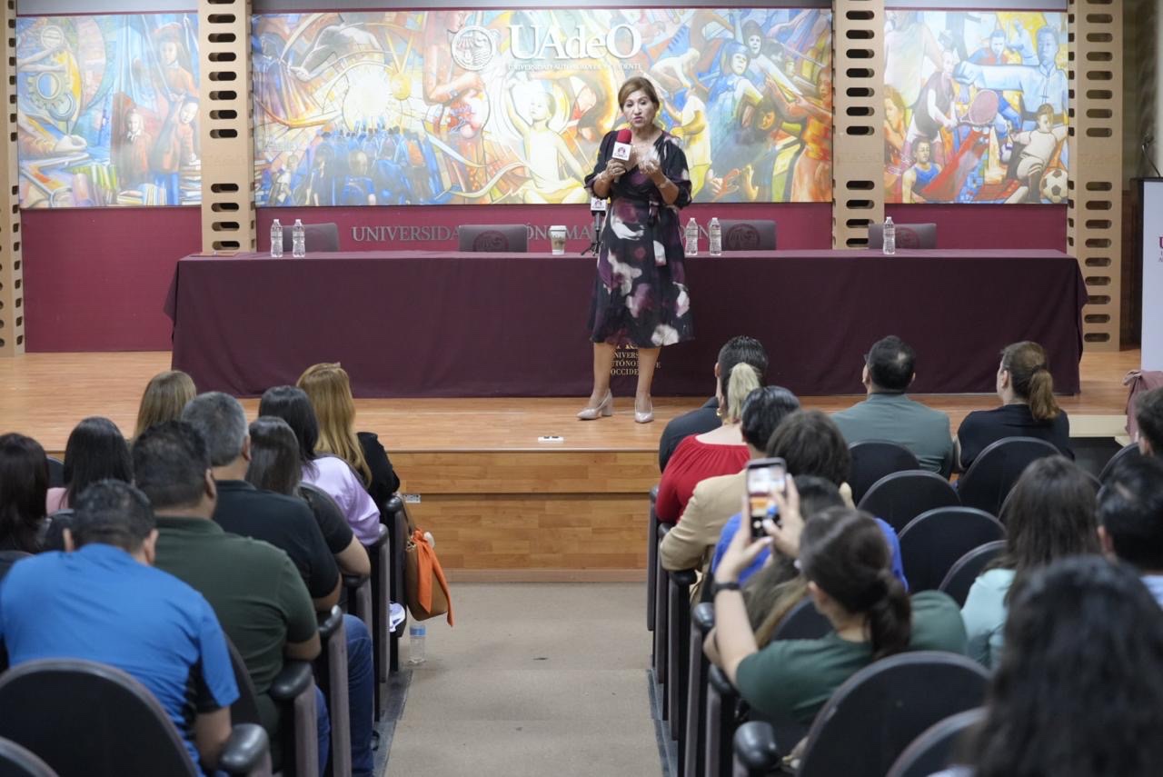 Culiacán, Sinaloa.- La presidenta de la Junta de Coordinación Política del Congreso del Estado de Sinaloa, diputada Tere Guerra, expuso ante estudiantes y personal de la Universidad Autónoma de Occidente (UAdeO) las principales reformas y buenas prácticas legislativas implementadas en la 65 legislatura, con énfasis en temas de seguridad, derechos de las mujeres y participación ciudadana.
