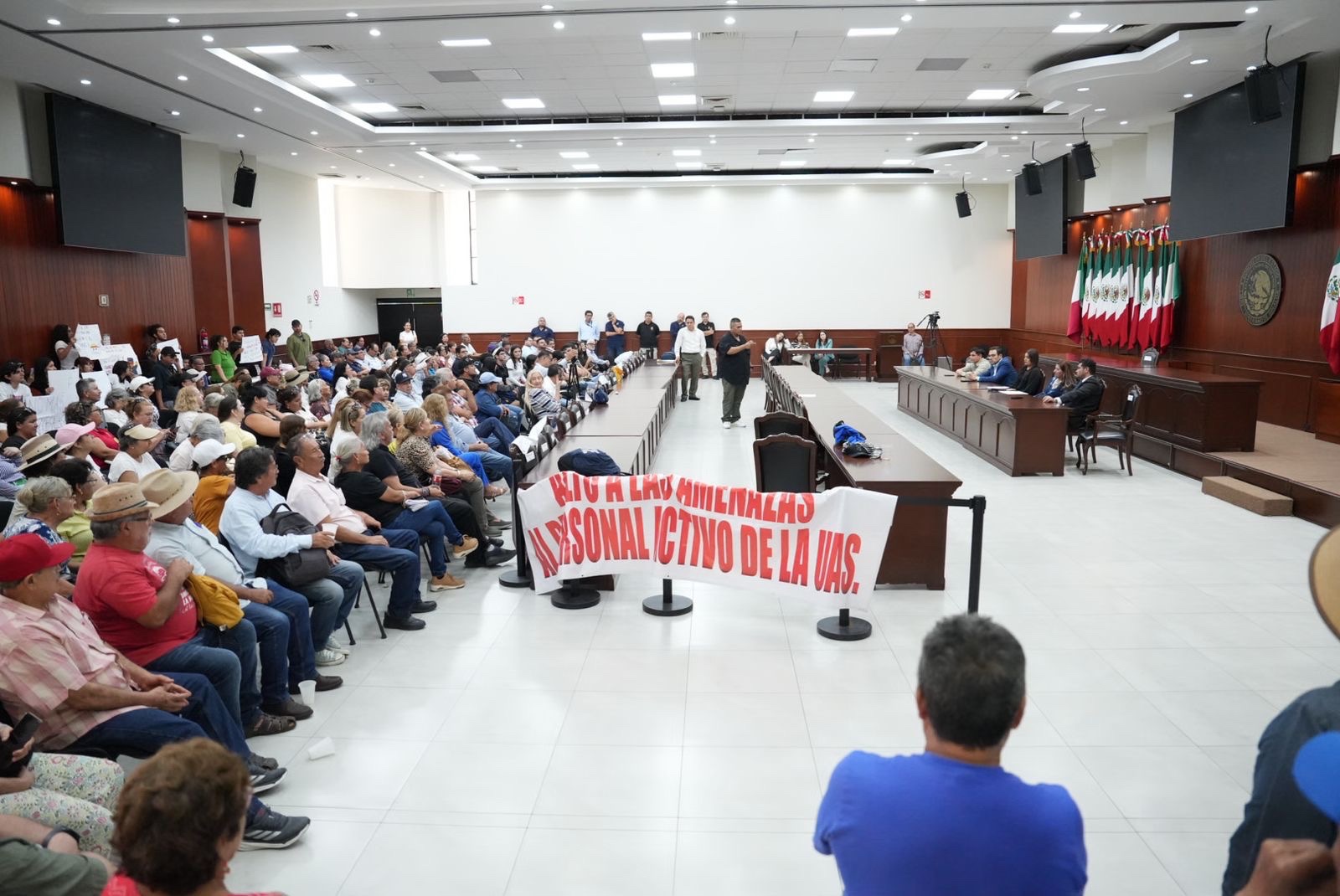 Culiacán, Sinaloa.- La Junta de Coordinación Política del Congreso del Estado (JUCOPO), encabezada por la diputada Tere Guerra, dio respuesta inmediata al grupo de manifestantes de la Asociación Civil de Jubilados y Pensionados de la UAS, así como al estudiantado de la misma Universidad, que asistieron esta mañana a la Sesión Ordinaria.