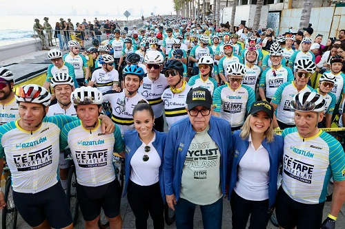 Mazatlán, Sin.- Teniendo como marco las bellas playas del puerto mazatleco, el gobernador Rubén Rocha Moya, junto a los embajadores de L’Étape Mazatlán, los ex ciclistas profesionales españoles Joseba Beloki Aguirrezabalaga, Pedro Horrillo y Fermín Trueba, dio el banderazo de arranque de la carrera ciclista más famosa del mundo L’Étape Mazatlán by Tour de France 2025, que reunió a más de 1200 ciclistas profesionales y amateurs que vivieron la mítica experiencia del Tour de France.