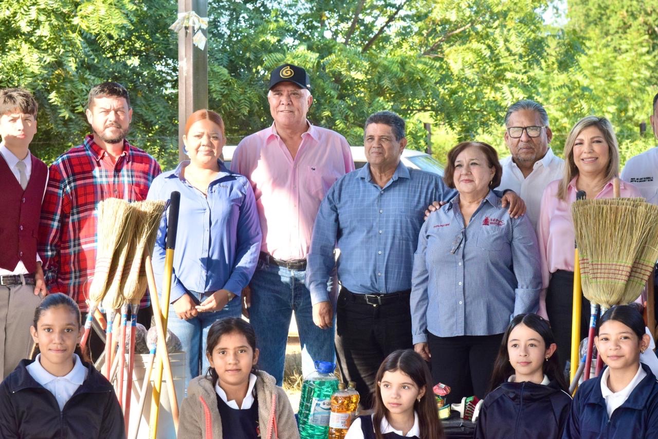 El Fuerte, a 10 de noviembre del 2025.- En el marco del programa Lunes Cívico, el alcalde Gildardo Leyva Ortega, acompañado de autoridades municipales y educativas, visitó la Escuela Secundaria Ing. Matías Ayala Quintero de la comunidad de Teraroba, donde se llevaron a cabo los honores a la Bandera y se hizo entrega de material de limpieza y mantenimiento.