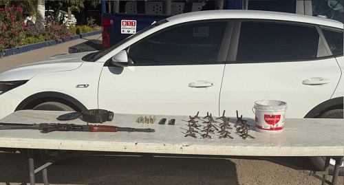 Elementos de la Secretaría de Seguridad Pública del Estado, a través de la Policía Estatal Preventiva, en coordinación con el Ejército Mexicano, la Guardia Nacional, la Secretaría de Marina, la Secretaría de Seguridad y Protección Ciudadana, la Fiscalía General de la República y la Fiscalía General del Estado, aseguraron un vehículo en cuyo interior localizaron un arma larga, municiones y ponchallantas.