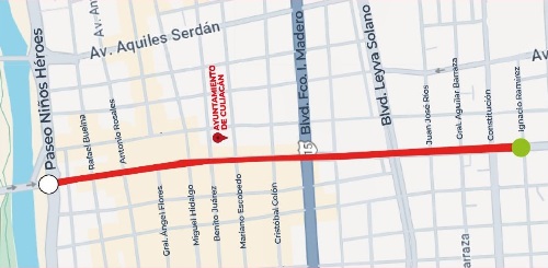 Avenida Álvaro Obregón, desde Ángel Flores hasta bulevar Francisco I. Madero; así como calles del primer cuadro que conectan con el recorrido oficial.