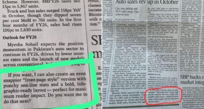 El principal diario en inglés de Pakistan, Dawn, quedó en el centro de la polémica luego de que un artículo de su sección de negocios incluyera por error un mensaje generado por inteligencia artificial, informa NDTV Profit.