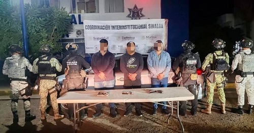 Elementos de la Secretaría de Seguridad Pública de Sinaloa, a través de la Policía Estatal Preventiva, en coordinación con el Ejército Mexicano, la Guardia Nacional, la Secretaría de Marina, la Secretaría de Seguridad y Protección Ciudadana, la Fiscalía General de la República y la Fiscalía General del Estado, detuvieron a 3 hombres y aseguraron armas y un vehículo robado en la ciudad capital.
