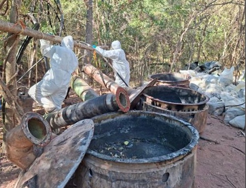 • 185 litros de una sustancia desconocida, marcados con la leyenda “MAZA CRUDO DESTILADA”