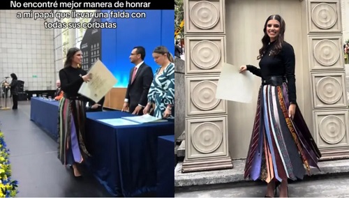 “No encontré mejor manera de honrar a mi papá que llevar una falda con sus corbatas”, escribió en su publicación en TikTok.