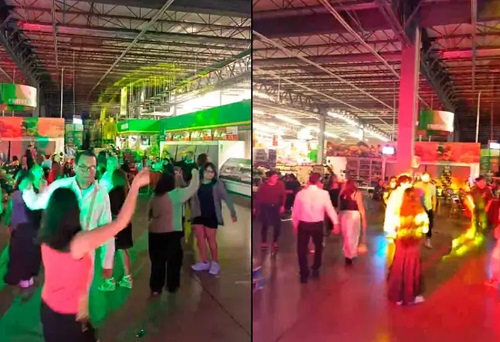 Sin embargo, en redes sociales se está haciendo viral una fiesta de fin de año que tuvo lugar nada menos que en una conocida tienda de autoservicio, donde movieron los estantes del área de salchichonería para que los empleados pudieran bailar a gusto.