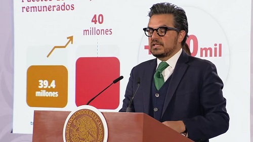 El director general del IMSS, Zoé Robledo, informó que entre enero y noviembre se han creado 600,000 nuevos puestos de trabajo remunerados, lo que equivale a una tasa de crecimiento 2.7%.