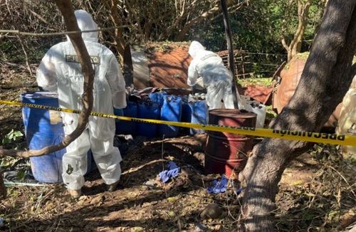 En el marco de la Operación Búsqueda, Localización y Destrucción de Laboratorios Clandestinos, al realizar reconocimientos terrestres, a pie y motorizados, en los municipios antes mencionados, el personal militar localizó 11 áreas de almacenamiento de precursores químicos que contenían lo siguiente: