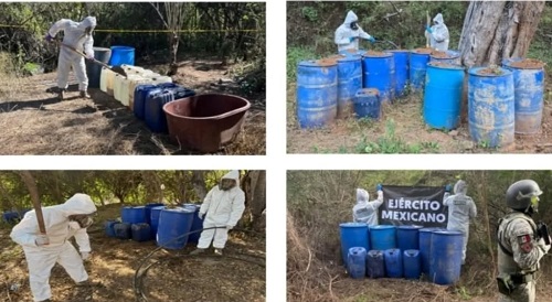 Elementos del Ejército Mexicano, en coordinación con la Guardia Nacional, la Secretaría de Marina, la Secretaría de Seguridad y Protección Ciudadana, la Fiscalía General de la República, la Fiscalía General del Estado y la Secretaría de Seguridad Pública de Sinaloa, a través de la Policía Estatal Preventiva, localizaron y destruyeron seis áreas de almacenamiento de precursores químicos en el municipio de Cosalá.