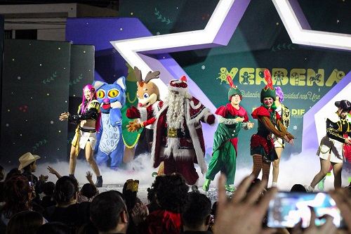 Más tarde, la magia de la Navidad se hizo presente con la llegada de Santa Claus, Rodolfo el reno y los duendes, quienes convivieron con las y los asistentes, recibieron cartas con deseos navideños y regalaron sonrisas a las niñas y niños que se dieron cita en la verbena.