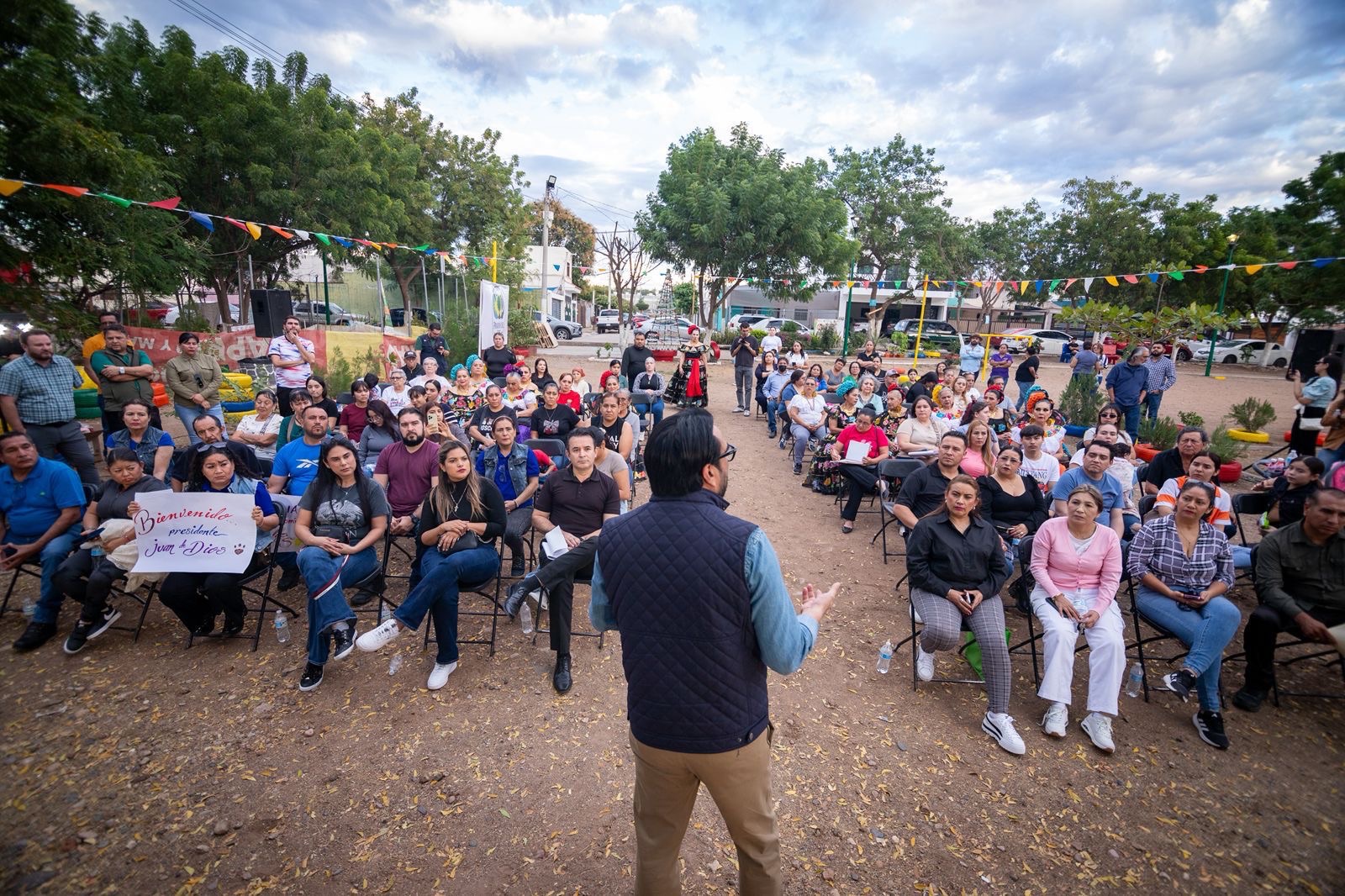 Culiacán, Sinaloa.- Como parte del ejercicio ciudadano Diálogos por el Bienestar, el alcalde Juan de Dios Gámez Mendívil sostuvo un encuentro directo con habitantes de la colonia Prados del Sol, donde escuchó de primera mano sus necesidades y se comprometió a instalar una techumbre metálica en el parque, además de dar seguimiento a las solicitudes prioritarias del sector.
