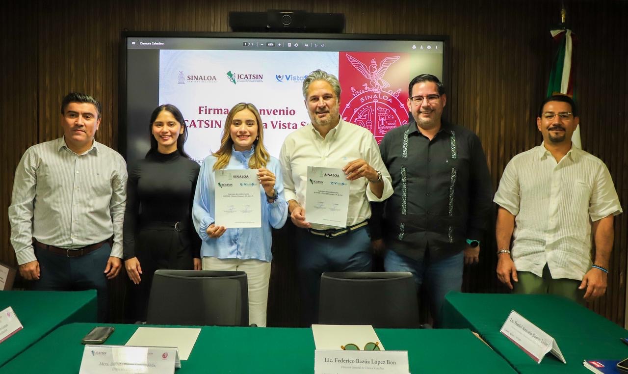 Culiacán, Sinaloa.– La Directora General del Instituto de Capacitación para el Trabajo del Estado de Sinaloa (ICATSIN), Brenda García Félix, firmó un convenio de colaboración con Clínicas Vista Sur, encabezadas por su Director General, Federico Bazua López Bon, con el objetivo de fortalecer alianzas estratégicas que impacten de manera directa en el bienestar y desarrollo de las y los sinaloenses.