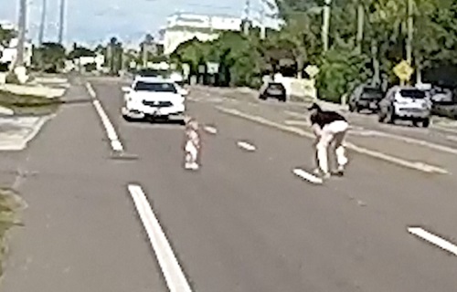 Un hombre puso en riesgo su vida al detener el tráfico en una carretera concurrida del condado de Brevard para rescatar a dos niñas que caminaban solas por una vía, según medios locales y videos difundidos el miércoles.