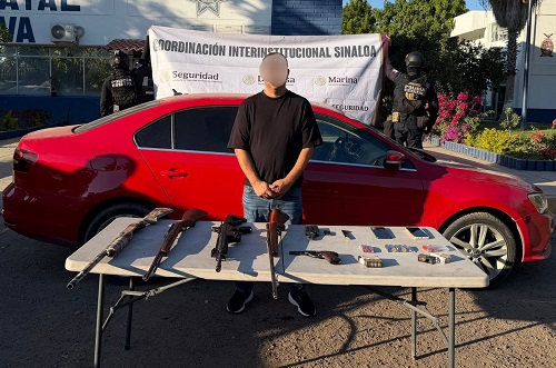 Elementos de la Secretaría de Seguridad Pública del Estado de Sinaloa, a través de la Policía Estatal Preventiva, en coordinación con el Ejército Mexicano, la Guardia Nacional, la Secretaría de Marina, la Secretaría de Seguridad y Protección Ciudadana, la Fiscalía General de la República y la Fiscalía General del Estado, detuvieron a una persona y aseguraron armamento, así como un vehículo en Culiacán.