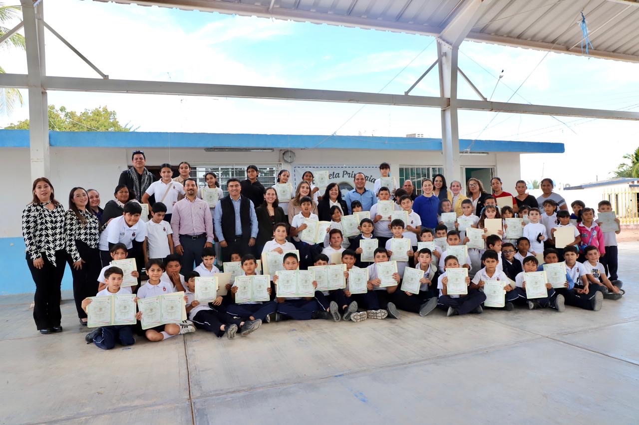 Playa Colorada, Angostura, Sinaloa.– En un evento lleno de alegría, emoción y participación de niñas y niños, el Instituto de Capacitación para el Trabajo del Estado de Sinaloa (ICATSIN) realizó la entrega de 95 certificados avalados por la Secretaría de Educación Pública (SEP) a alumnas y alumnos que concluyeron satisfactoriamente diversos cursos impartidos en la Escuela Primaria Margarita Maza de Juárez, en la comunidad de Playa Colorada.