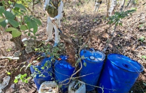 El hallazgo se registró al realizar reconocimientos terrestres en el marco de la “Operación Búsqueda, Localización y Destrucción de Laboratorios Clandestinos” en comunidades de la capital del estado. En las áreas de concentración se localizó lo siguiente: