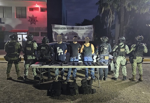 Personal de la Secretaría de Seguridad Pública del Estado, a través del Grupo de Operaciones Especiales Sinaloa de la Policía Estatal Preventiva, en coordinación con la Guardia Nacional, el Ejército Mexicano, la Secretaría de Marina, la Fiscalía General de la República y la Fiscalía General del Estado, detuvo a tres civiles y aseguró armamento, así como un vehículo con reporte de robo en Culiacán.