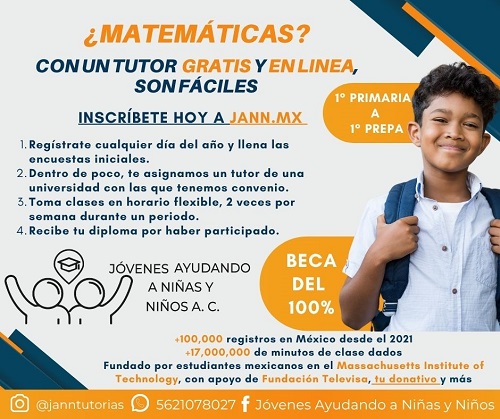 La plataforma es www.jann.mx y está disponible todos los días del año, contando con asesores universitarios de todo el país y horarios flexibles.