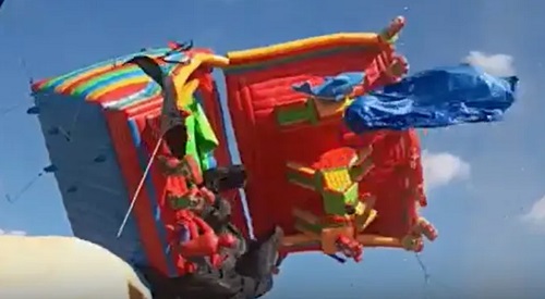 VIDEO | Castillo inflable sale volando por los aires con personas en su interior