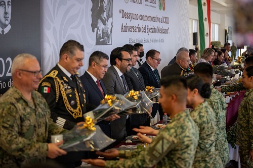 Culiacán, Sin.- En un acto de reconocimiento a la vocación de servicio hacia la población del país, el alcalde Juan de Dios Gámez Mendívil acudió, en compañía del gobernador Rubén Rocha y de autoridades legislativas y judiciales, a la conmemoración del 113 aniversario del Ejército Mexicano.