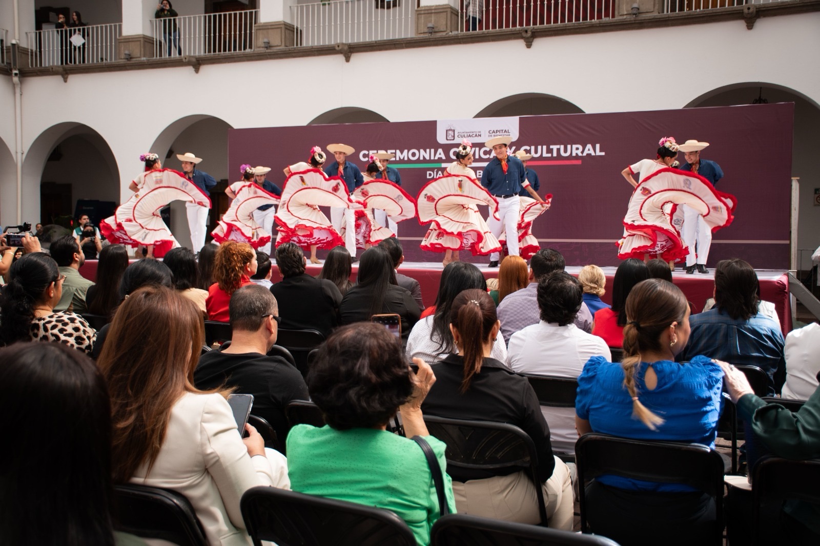 Como parte del programa, la Compañía de Danza Folclórica Jiapsi Cegua ofreció tres presentaciones artísticas que enmarcaron los bloques de exhibición de banderas históricas.