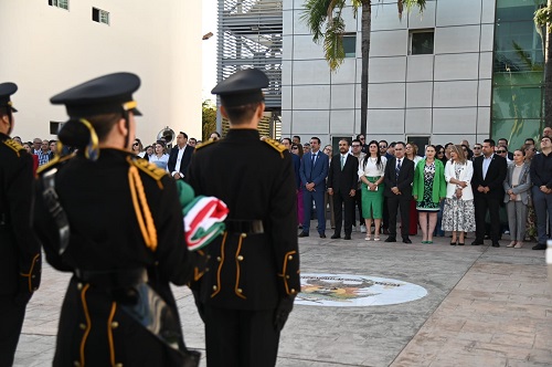 “Hoy es un día muy importante: es el día de nuestro lábaro patrio. Es una fecha que tenemos que cuidar y respetar; sobre todo, debemos rendir honores a nuestra bandera y dar seguimiento para que las nuevas generaciones no pierdan esta tradición. Los valores cívicos tienen que fomentarse porque son parte de la formación integral de los jóvenes y, también, una forma de combatir lo que estamos viviendo en estos tiempos”, afirmó.