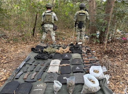 Elementos del Ejército Mexicano, en coordinación con la Guardia Nacional, la Secretaría de Marina, la Secretaría de Seguridad y Protección Ciudadana, la Fiscalía General de la República, la Fiscalía General del Estado y la Secretaría de Seguridad Pública del Estado, en Rosario, aseguraron armas, cargadores, cartuchos y chalecos tácticos.