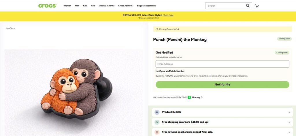 Lanza Crocs accesorio inspirado en Punch, el mono viral de internet