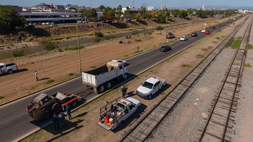 Culiacán, Sin.– Con el objetivo de ofrecer un entorno más limpio y seguro para quienes transitan diariamente por la zona, el Ayuntamiento de Culiacán realiza una jornada de limpieza en el Eje Federalismo, a la altura de la colonia Recursos Hidráulicos.