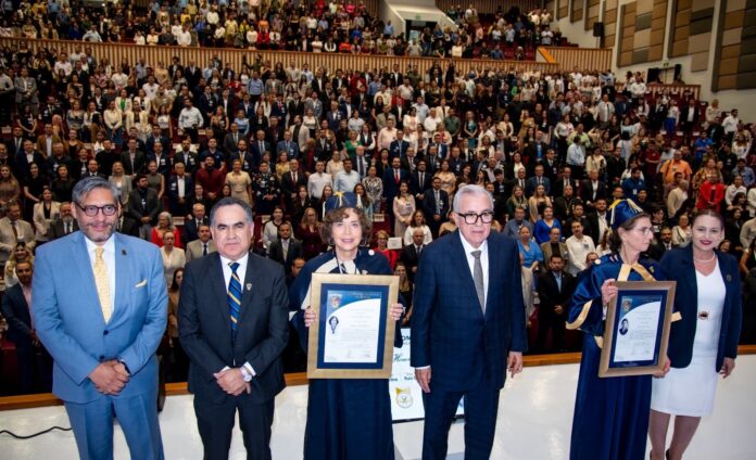 La Universidad Autónoma de Sinaloa (UAS) se vistió de gala y, en un marco de celebración sin precedentes, entregó su más alto reconocimiento: el Doctorado Honoris Causa a la Doctora Annie Pardo Cemo y a la Doctora Rosaura Ruiz Gutiérrez, dos mexicanas sobresalientes por su inteligencia e inspiradoras por su tenacidad, liderazgo y calidad moral.