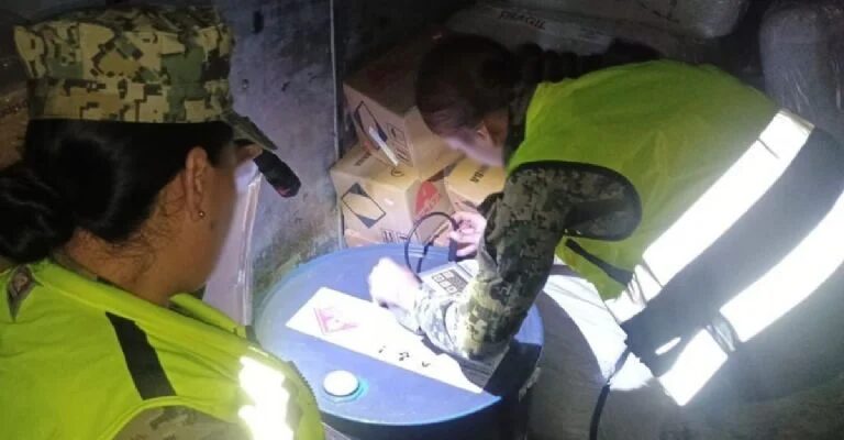 El material químico se halló en un tractocamión de paquetería; el vehículo y lo asegurado fue puesto a disposición del Ministerio Público de la Federación en Los Mochis