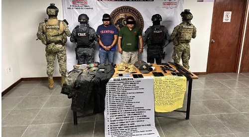 Autoridades rescataron a cinco personas que se encontraban secuestradas y detuvieron a dos presuntos integrantes del Cártel de Sinaloa, en Acacoyagua, Chiapas.