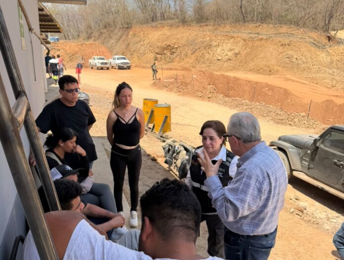 Rosario, Sinaloa.- El gobernador Rubén Rocha Moya realiza una nueva visita a la mina Santa Fe en Rosario, donde junto con Laura Velázquez, Coordinadora Nacional de Protección Civil, sostuvieron una charla con familiares de los trabajadores que aún siguen atrapados al interior de la mina, donde les reiteraron todo el apoyo y respaldo para continuar realizando los trabajos necesarios para tratar de rescatar a los tres trabajadores, además ofrecieron detalles de las maniobras que se llevan a cabo para poder llegar a los mineros.