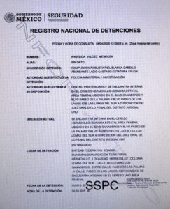El documento emitido por la Secretaría de Seguridad y Protección Ciudadana confirma que la edil nogalense fue aprehendida por elementos de la Policía Ministerial de Investigación.