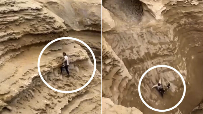 Un video publicado el miércoles muestra a un hombre que descendió por uno de los destinos turísticos más concurridos del Perú, el Cañón de los Perdidos, ubicado en la región de Ica, donde un perro había caído a gran profundidad. Al final, con el animal en su mano izquierda lo rescató escalando.