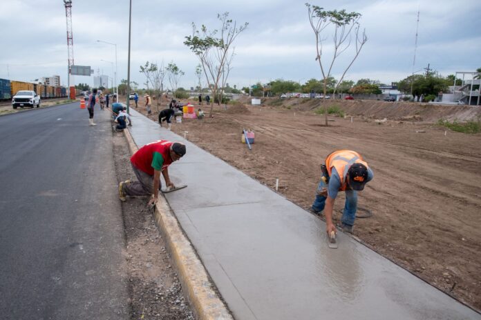 Culiacán, Sinaloa.- Como parte de los trabajos continuos de mejora de la infraestructura vial en la ciudad, cuadrillas de la Secretaría de Obras y Servicios Públicos del Ayuntamiento de Culiacán, avanzan en las acciones sobre el Eje Federalismo, donde recientemente se llevó a cabo el colado de banquetas, con el objetivo de generar espacios más accesibles y caminables para la ciudadanía.