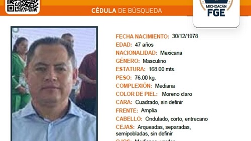 La Fiscalía de Michoacán emitió una ficha de búsqueda para dar con su localización, ante la posibilidad de que haya sido víctima de algún delito.