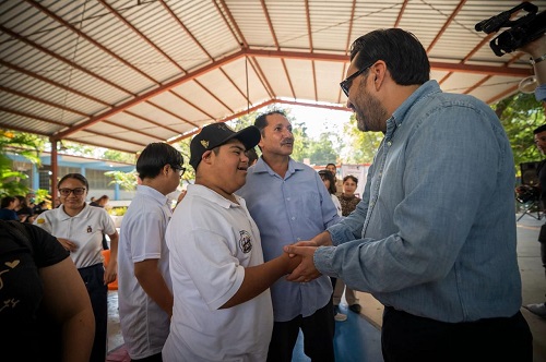 Culiacán, Sin.- Como parte de la estrategia impulsada para fortalecer la infraestructura educativa en el municipio, el presidente municipal, Juan de Dios Gámez, acudió a un encuentro con la comunidad escolar del Centro de Atención Múltiple (CAM 24), ubicado en la colonia Antonio Rosales.