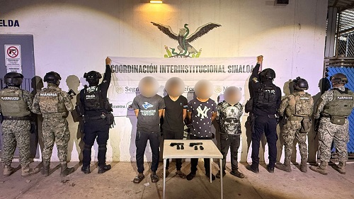 Personal del Ejército Mexicano y elementos de la Secretaría de Seguridad Pública del Estado, a través del Grupo de Operaciones Especiales de Sinaloa (GOES) de la Policía Estatal Preventiva, en coordinación con la Guardia Nacional, la Secretaría de Marina, la Secretaría de Seguridad y Protección Ciudadana, la Fiscalía General de la República y la Fiscalía General del Estado, llevaron a cabo la detención de cuatro personas, a quienes se les aseguraron armas cortas en el municipio de Mazatlán.