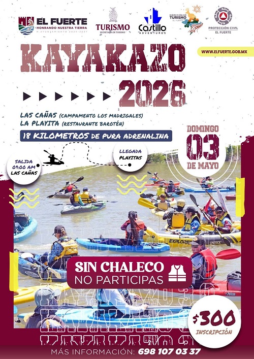 El Fuerte, Sin.- Con el objetivo de continuar fortaleciendo el turismo de aventura y promover las bellezas naturales del municipio, fue anunciada la edición 2026 del “Kayakazo”, evento organizado por Castillo Adventures en coordinación con el H. Ayuntamiento de El Fuerte.